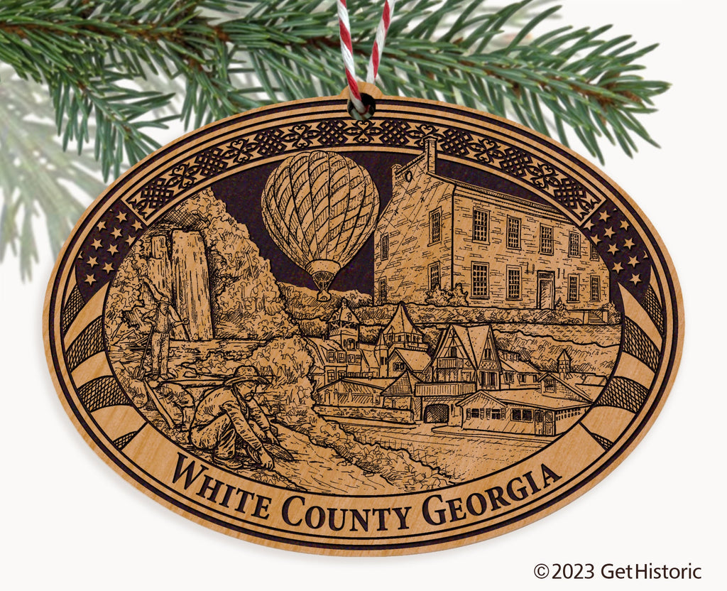 Celebrate the history of White County Georgia with our exclusive Natural Wood Engraved Ornament. One side will feature unique artwork telling the story of your county's history. The other side features a FREE personalization to create a cherished keepsake. If you choose not to personalize, our Get Historic logo and scrollwork will be engraved.