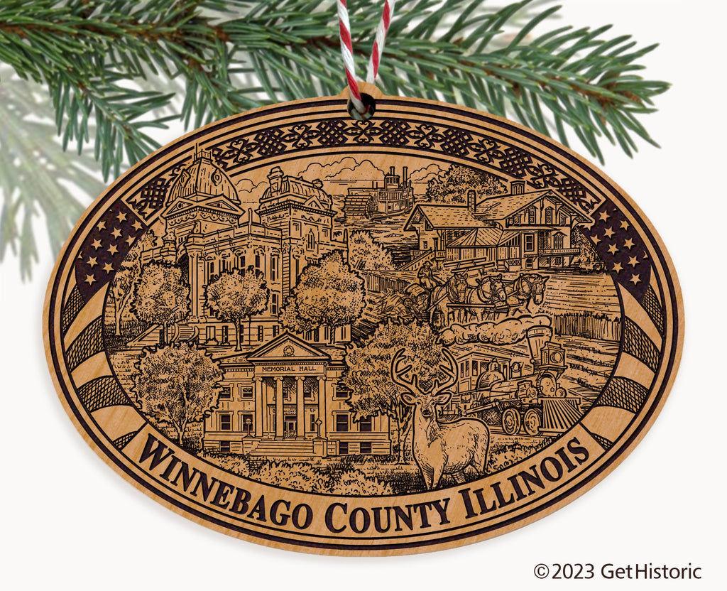 Winnebago County Illinois Natural Wood Engraved Ornament