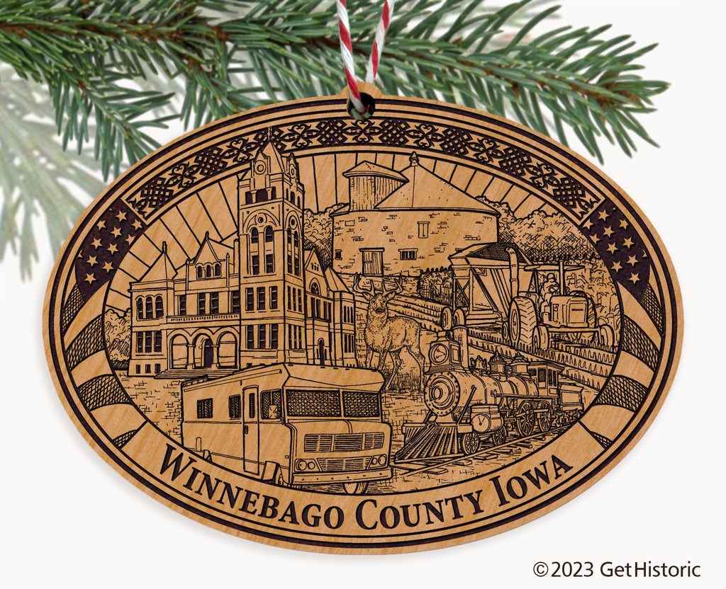 Winnebago County Iowa Natural Wood Engraved Ornament