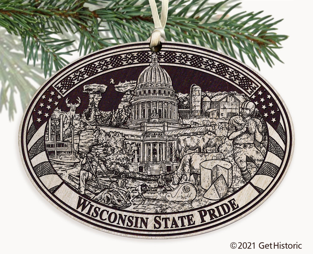 Celebrate the history of Wisconsin with our exclusive Personalized Wood Engraved Ornament. One side will feature unique artwork telling the story of your state's history. The other side will be personalized with your own wording to create a cherished keepsake. If you choose not to personalize, our Get Historic logo and scrollwork will be engraved.