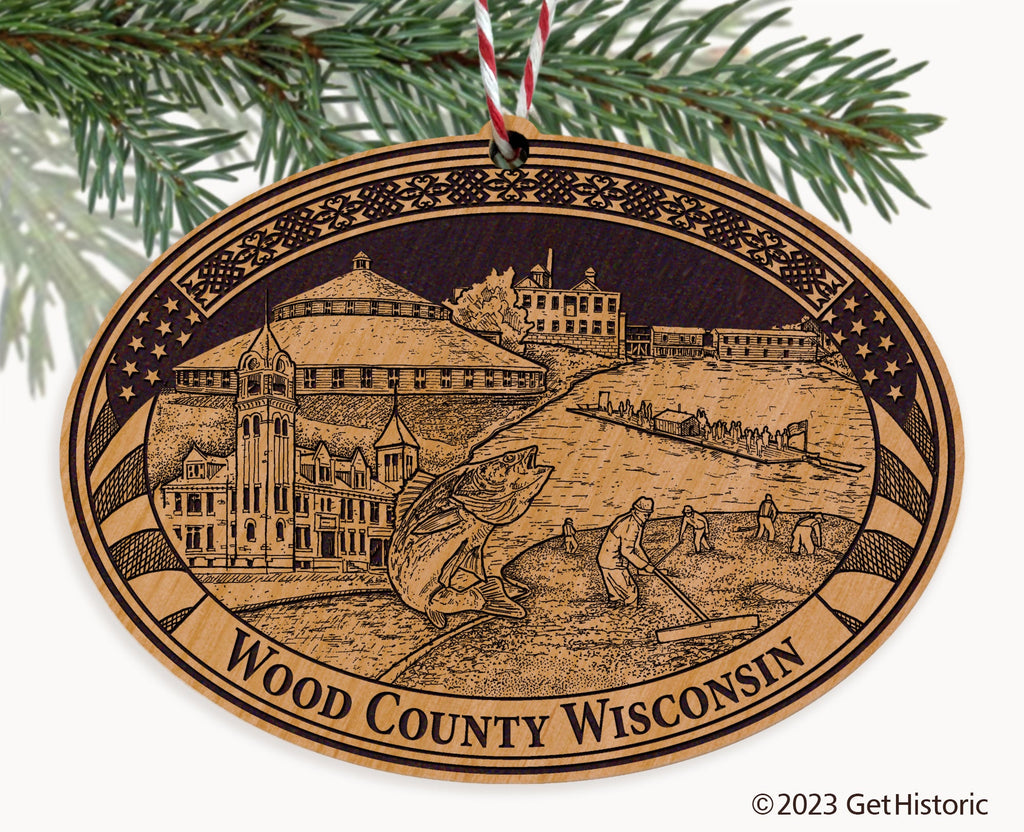Celebrate the history of Wood County with our exclusive Natural Wood Engraved Ornament. One side will feature unique artwork telling the story of your county's history. The other side features a FREE personalization to create a cherished keepsake. If you choose not to personalize, our Get Historic logo and scrollwork will be engraved.
