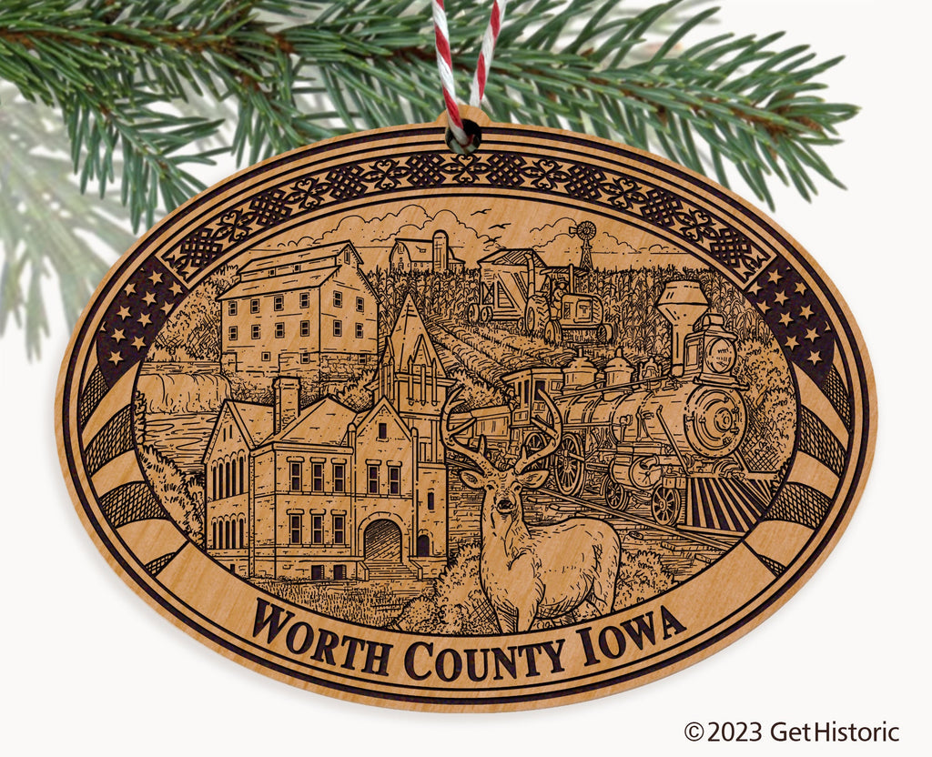 Worth County Iowa Natural Wood Engraved Ornament